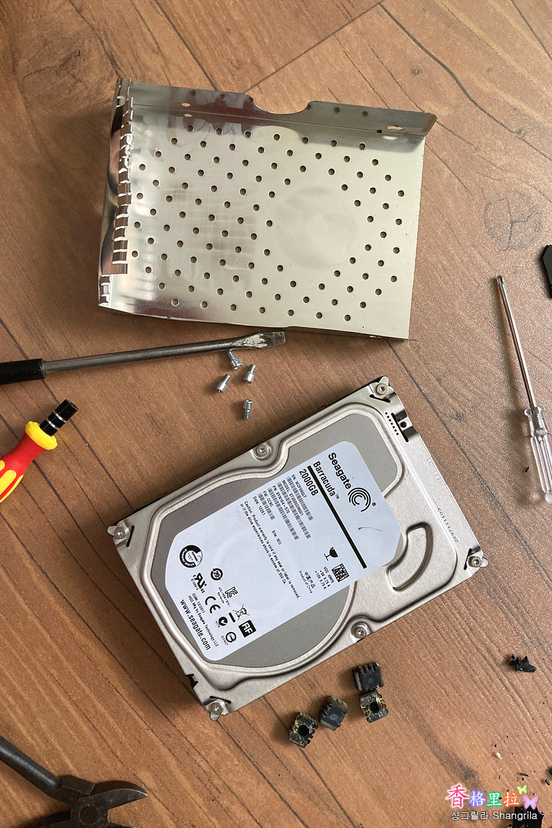 씨게이트 외장하드 케이스는 그냥 분해가 안되어서 결국 플라스틱 케이스를 깨고 나서야 하드디스크를 분리할 수 있었다.