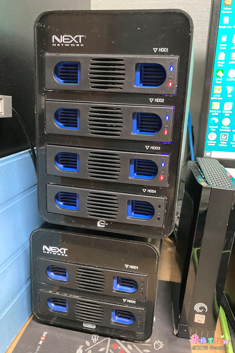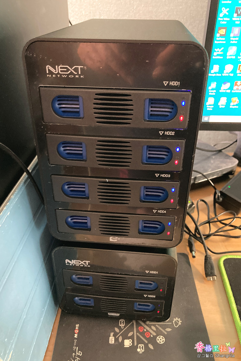 PC 본체에 있는 하드디스크 외 외장하드를 사진처럼 여러 종류를 운영하고 있다.