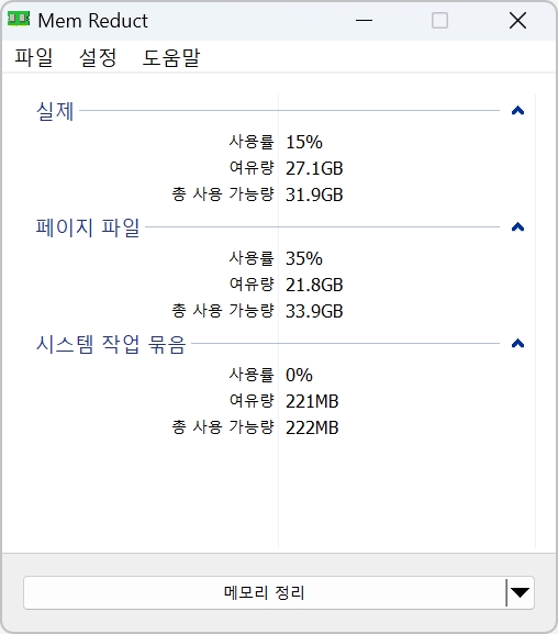 고사양의 컴퓨터를 사용하면 별로 체감할 수 없을 정도이지만 오래된 구형 컴퓨터는 버벅된다는 느낌이 바로 온다. 이럴 때 메모리를 정리해 주면 조금 속도가 빨라짐을 느낄 수 있다.