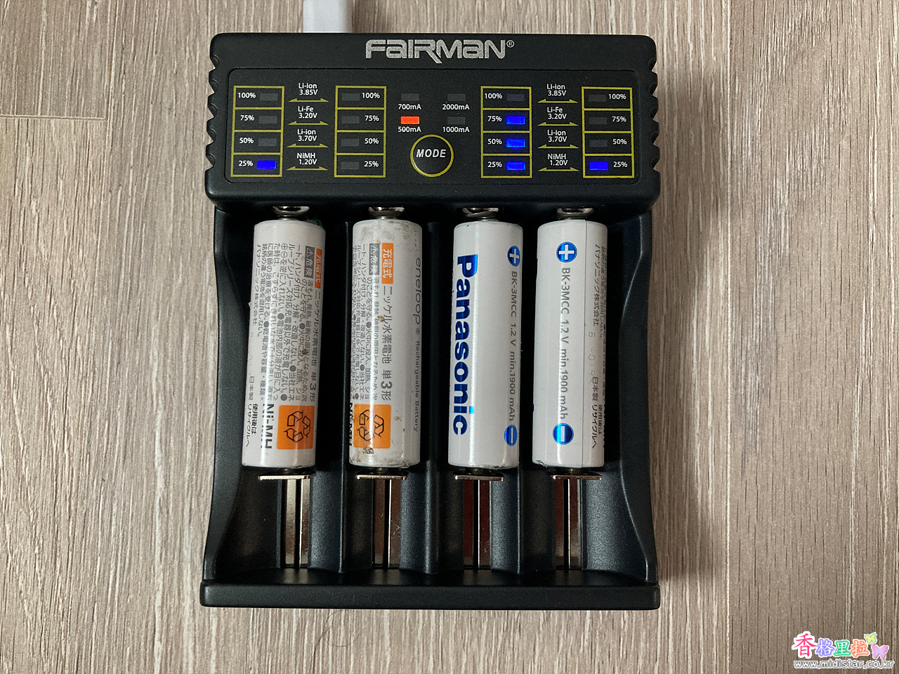 Panasonic의 1900mAh 1.2V AA Type Ni-MH 배터리 충전.