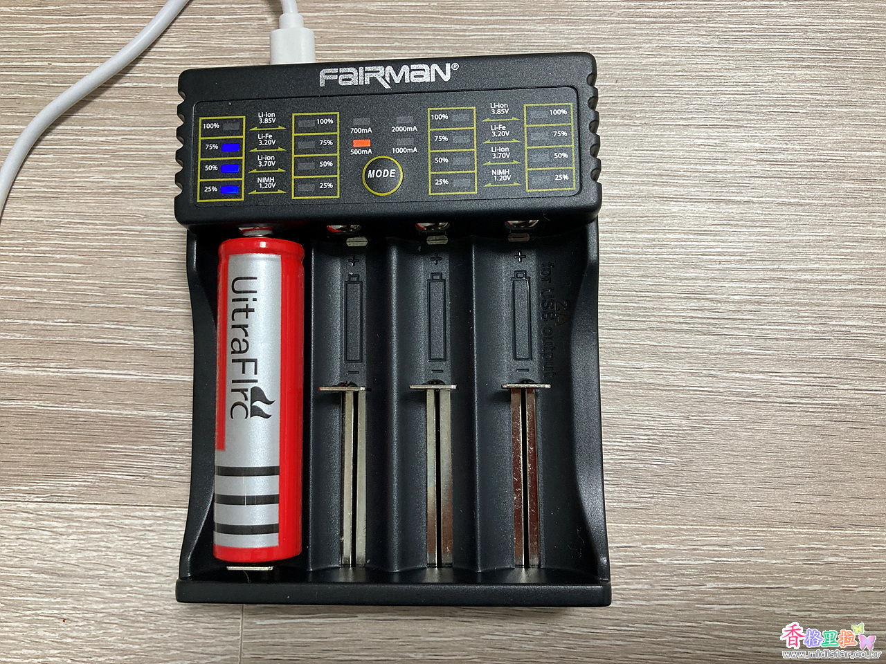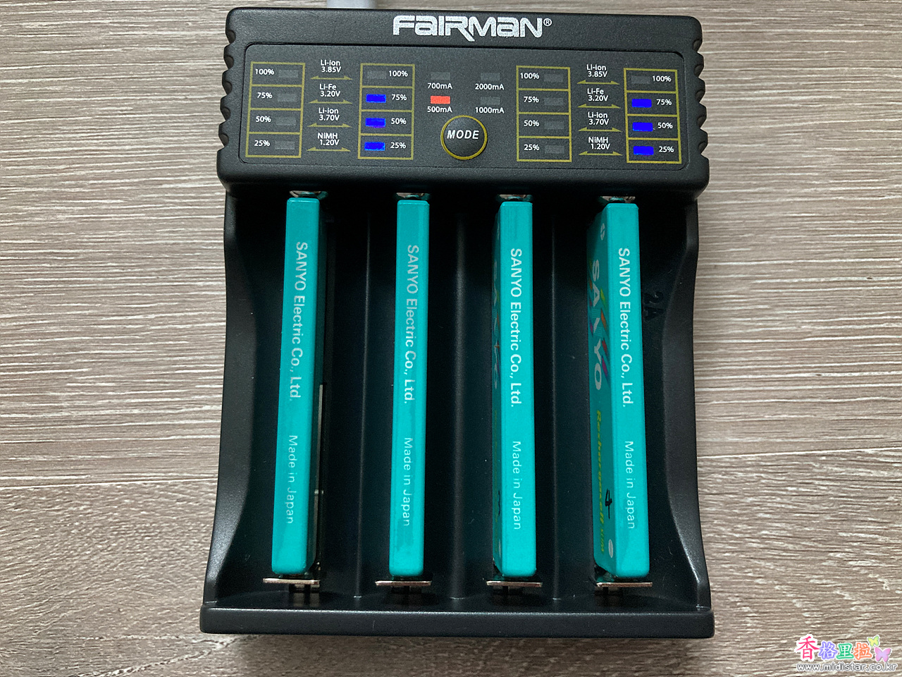 Mode 버튼을 2초 이상 누르면 충전전류를 700mA, 1000mA, 2000mA까지 선택할 수 있는데 2000mA 충전은 맨 오른쪽 슬롯만 가능하다.